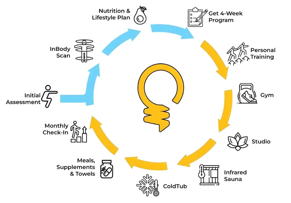 a training plan, nutrition guidance, PT sessions, and recovery access that actually fits